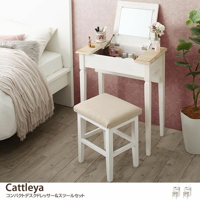 【送料無料】cattleya コンパクトデスクドレッサー&スツールセット