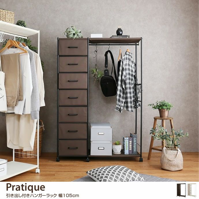 【送料無料】【幅105cm】Pratique 引き出し付きハンガーラック