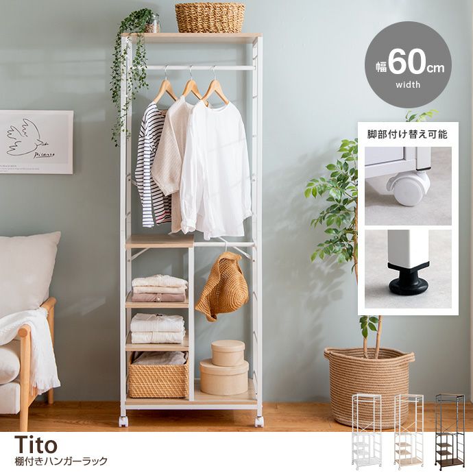 【送料無料】【幅60cm】Tito 棚付きハンガーラック