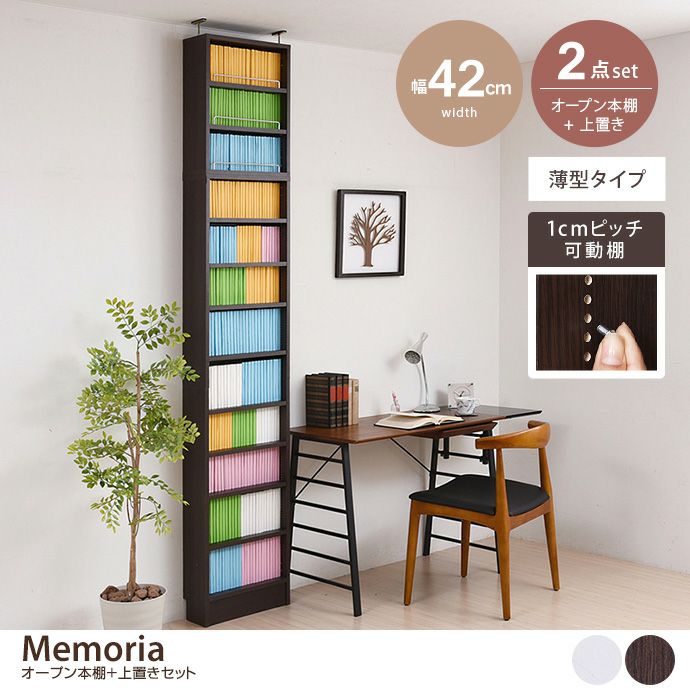 【送料無料】【2点セット:幅42cm】Memoria オープン本棚+上置き(薄型タイプ)