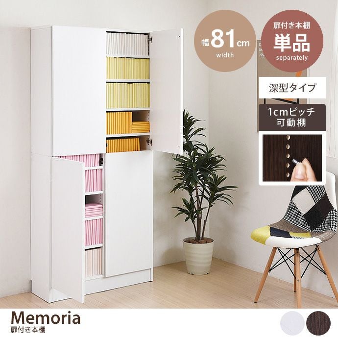 【送料無料】【単品:幅81cm】Memoria 扉付き本棚(深型タイプ)