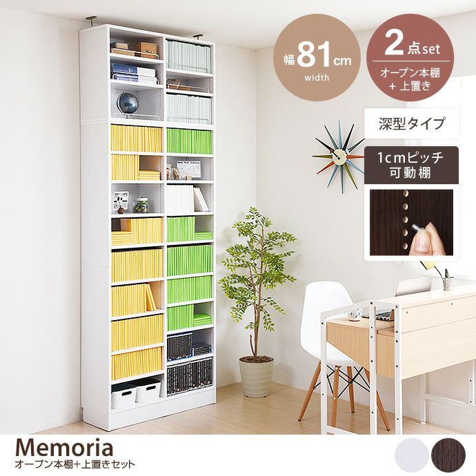 【送料無料】【2点セット:幅81cm】Memoria オープン本棚+上置き(深型タイプ)