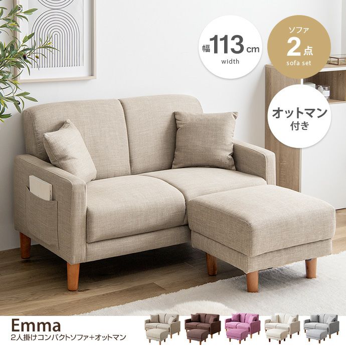 【送料無料】【2点セット】Emma コンパクト2人掛けソファ+オットマン
