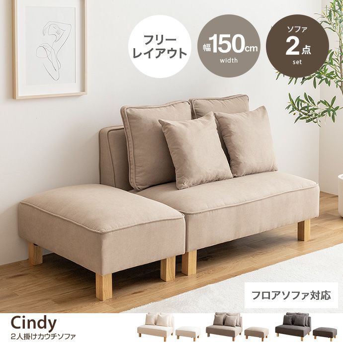 【送料無料】【2点セット】Cindy 2人掛けカウチソファ