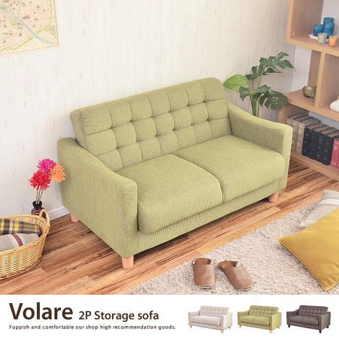 【送料無料】Volare 2人掛け収納付きソファ