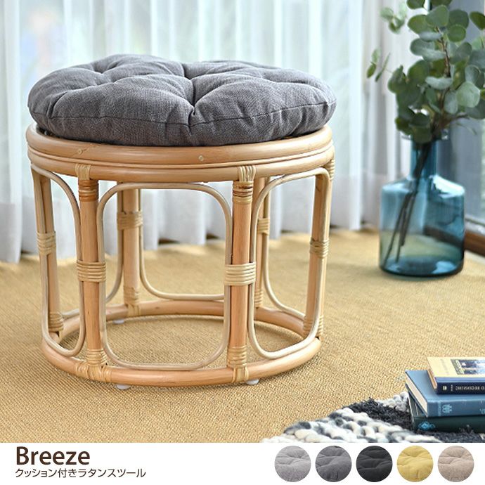【送料無料】Breeze クッション付きラタンスツール