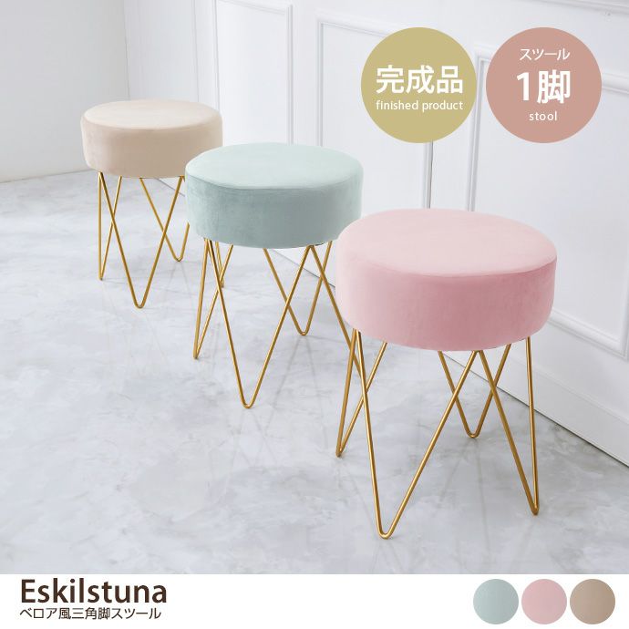 Eskilstuna ベロア風三角脚スツール
