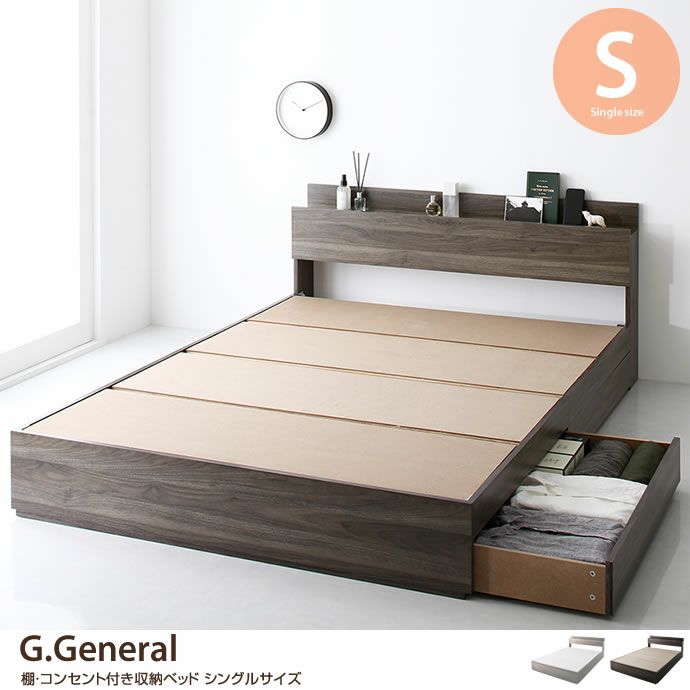 【送料無料】【シングル】G.General 棚・コンセント付き収納ベッド
