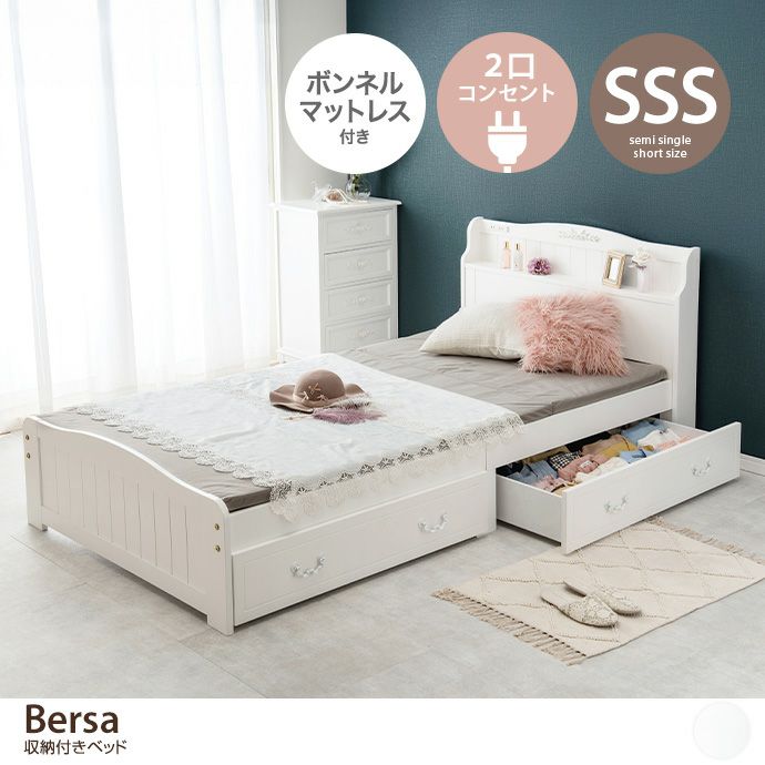 【送料無料】【セミシングルショート】Bersa 収納付きベッド(ボンネルマットレス付き)