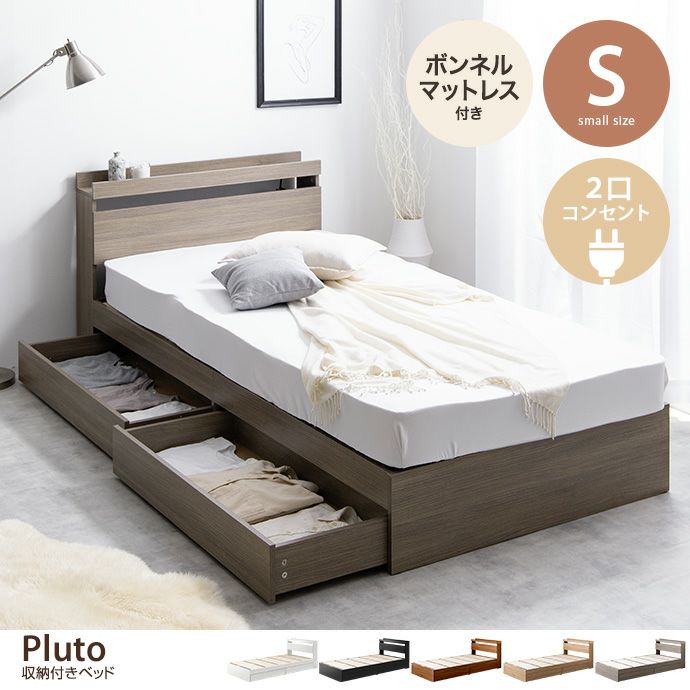 【送料無料】【シングル】Pluto 収納付きベッド(ボンネルマットレス付き)