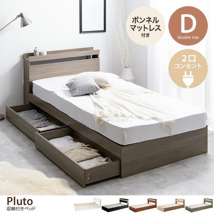 【送料無料】【ダブル】Pluto 収納付きベッド(ボンネルマットレス付き)
