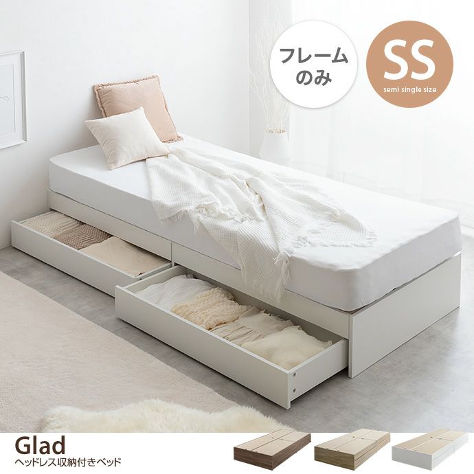 【送料無料】【セミシングル】Glad ヘッドレス収納付きベッド