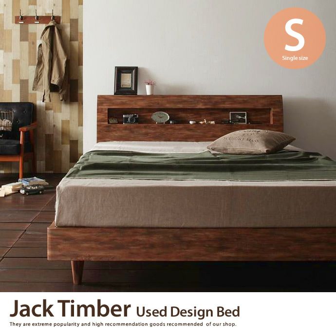 【送料無料】【シングル】 Jack timber すのこベッド 棚付 コンセント付 幅102cm