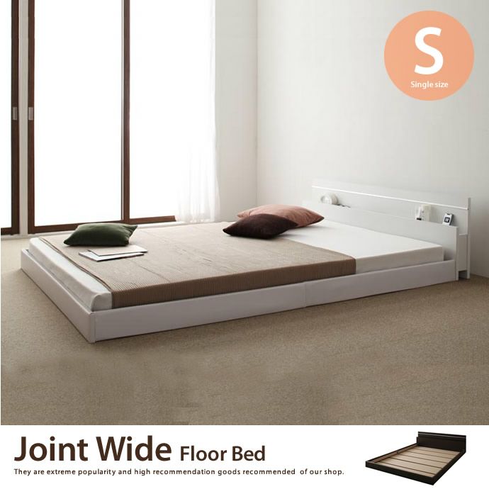 【送料無料】【シングル】 Joint Wide フロアベッド ロータイプ 棚付 コンセント付 幅105cm