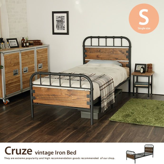 【送料無料】【シングル】 Cruze ヴィンテージアイアンベッド