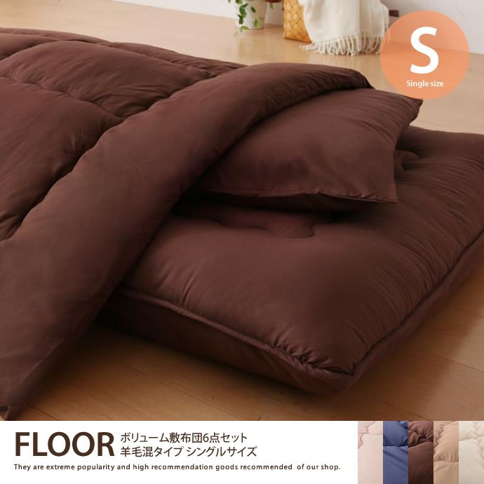 【送料無料】FLOOR ボリューム敷布団6点セット シングル(羊毛混タイプ)