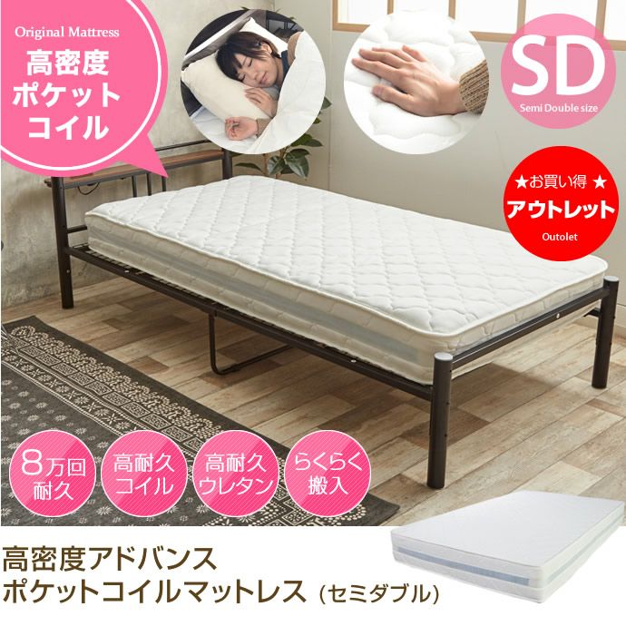 【送料無料】【アウトレット品】高密度アドバンスポケットコイルマットレス(セミダブル)