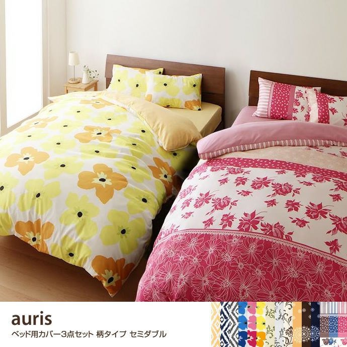 【柄タイプ・セミダブル】auris ベッド用カバー3点セット
