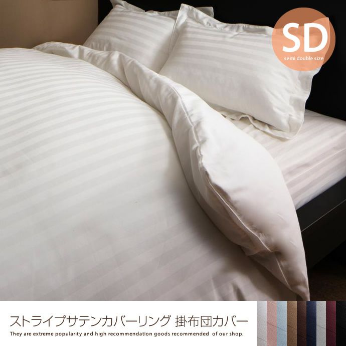 ストライプサテンカバーリング 掛布団カバー【セミダブル】