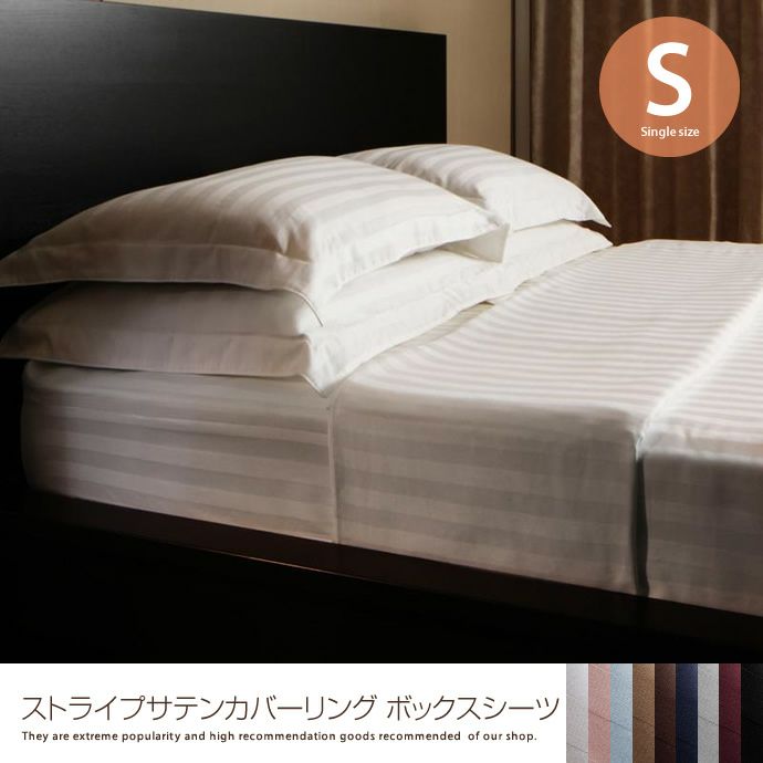 ストライプサテンカバーリング ボックスシーツ【シングル】