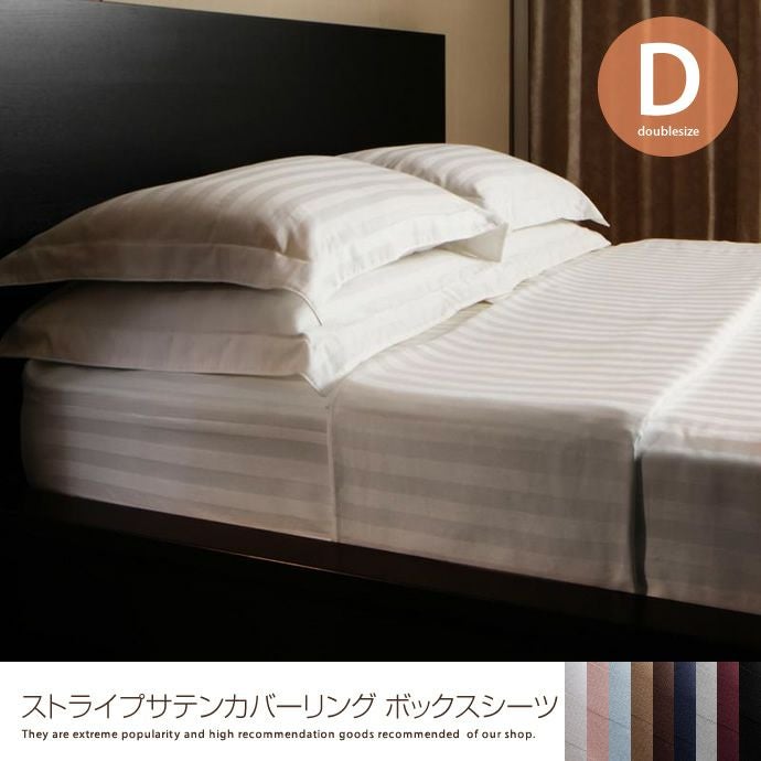 ストライプサテンカバーリング ボックスシーツ【ダブル】