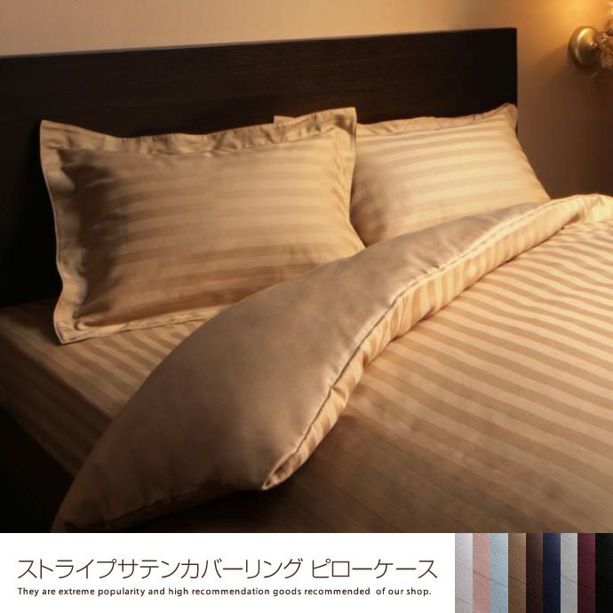 ストライプサテンカバーリング ボックスシーツ【シングル】