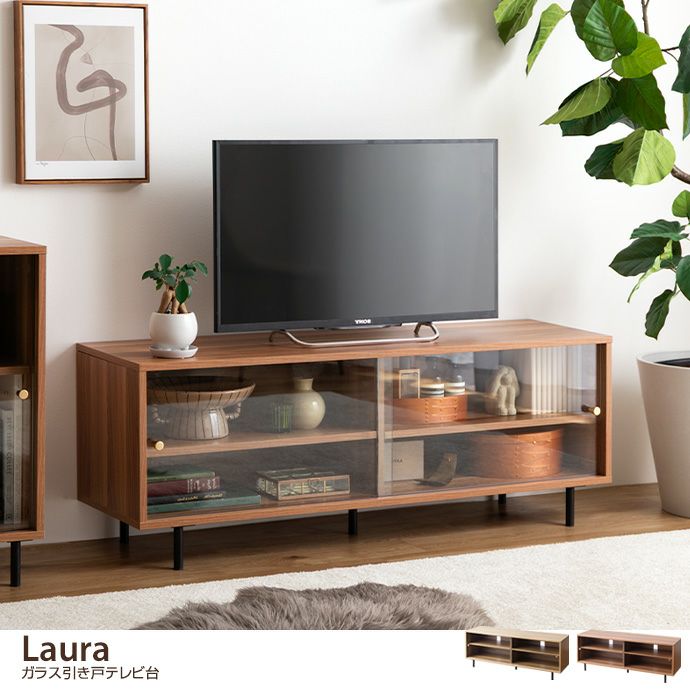 【送料無料】【幅120cm】Laura ガラス引き戸テレビ台