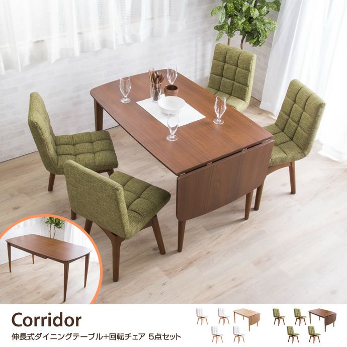 【送料無料】Corridor 伸長式ダイニングテーブル+回転チェア 5点セット