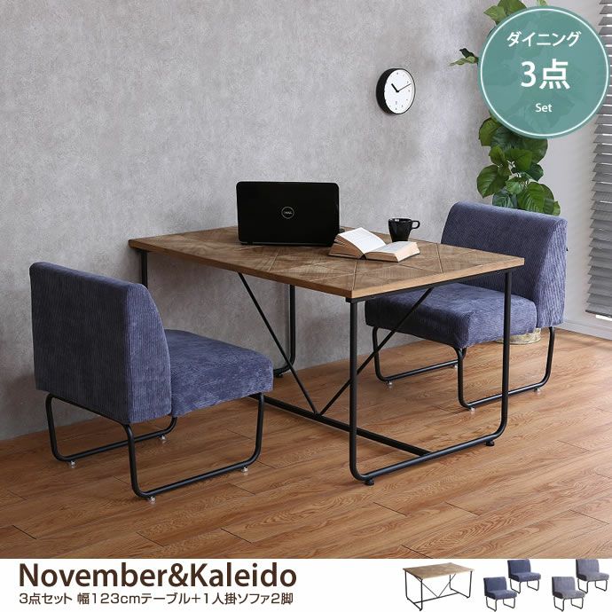 【送料無料】November&Kaleido ダイニング3点セット 1人掛け×2 テーブル
