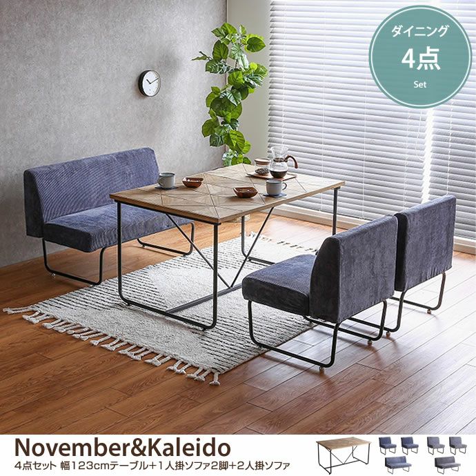 【送料無料】【4点セット】November&Kaleido 幅123cmテーブル+1人掛ソファ2脚+2人掛ソファ