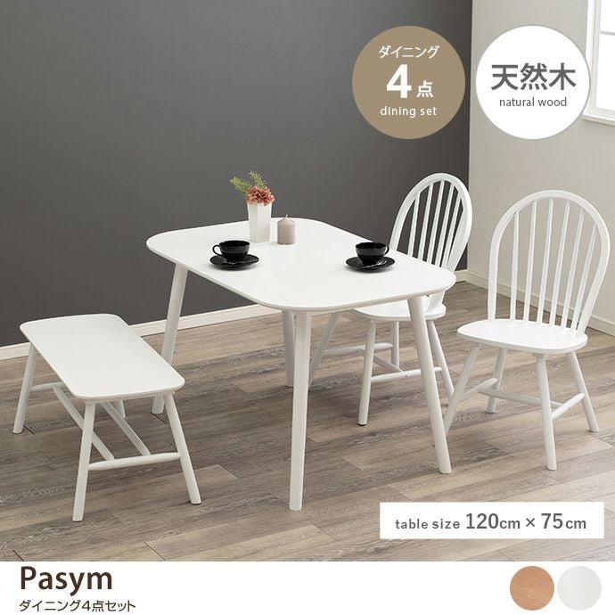 【送料無料】【4点セット】Pasym 幅120cmダイニングテーブル+チェア2脚+ベンチ