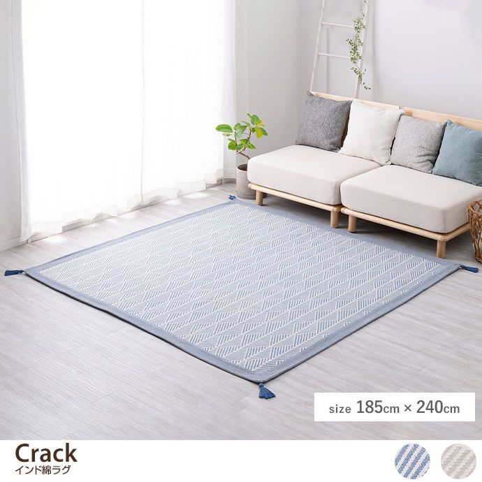 【長方形:185cm×240cm】Crack インド綿ラグ
