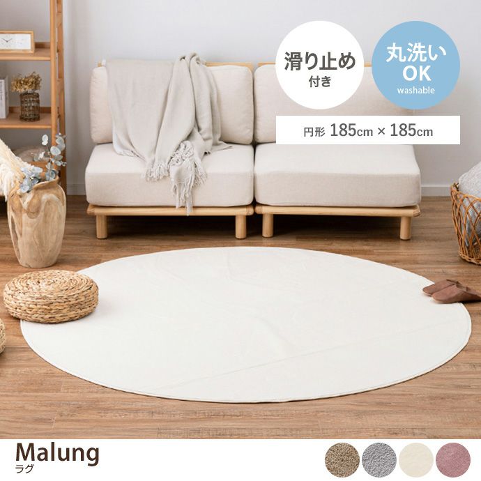【円形:185cm×185cm】Malung メレンゲタッチの洗えるコンパクトラグ