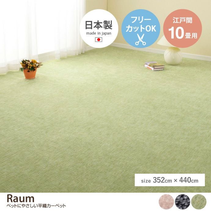 【送料無料】【長方形:352cm×440cm】Raum ペットにやさしい平織カーペット