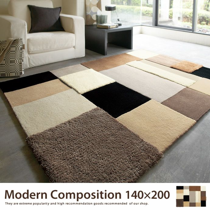 【送料無料】Modern Composition スクエアラグ カーペット 140×200