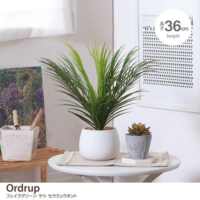 【高さ36cm】Ordrup フェイクグリーン ヤシ セラミックポット