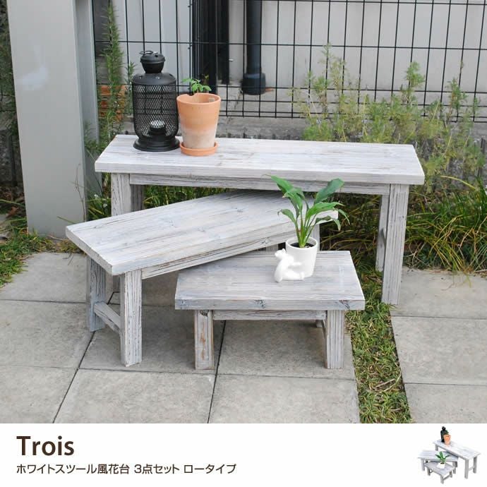 【送料無料】【3点セット・ロータイプ】Trois ホワイトスツール風花台