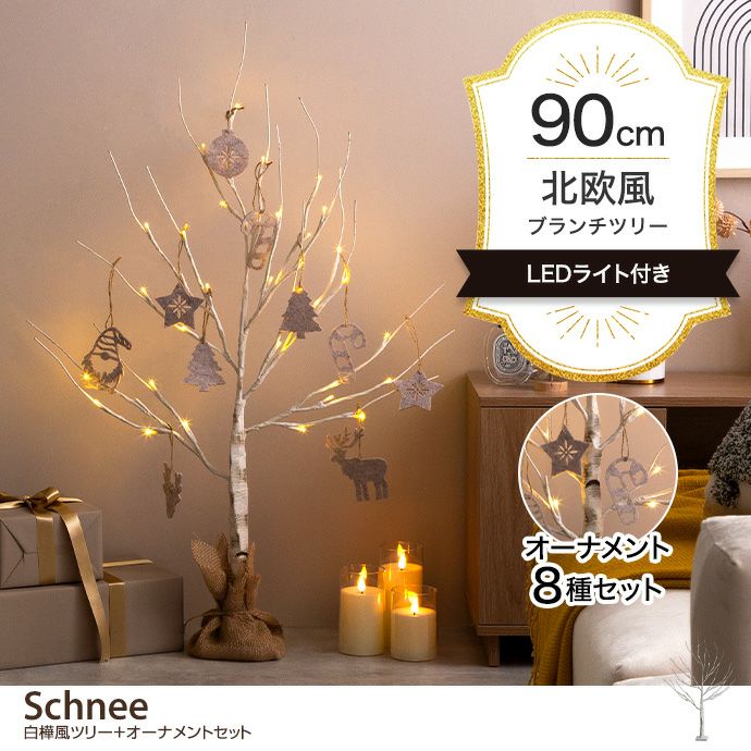 【送料無料】【オーナメントセット】Schnee 高さ90cm 白樺風ツリー+オーナメント
