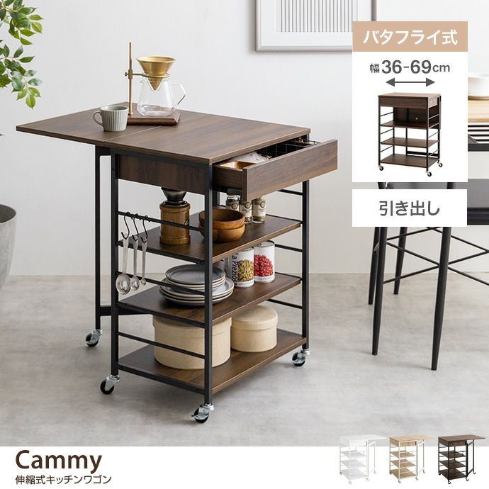 【送料無料】【幅36~69cm】Cammy 伸縮式キッチンワゴン