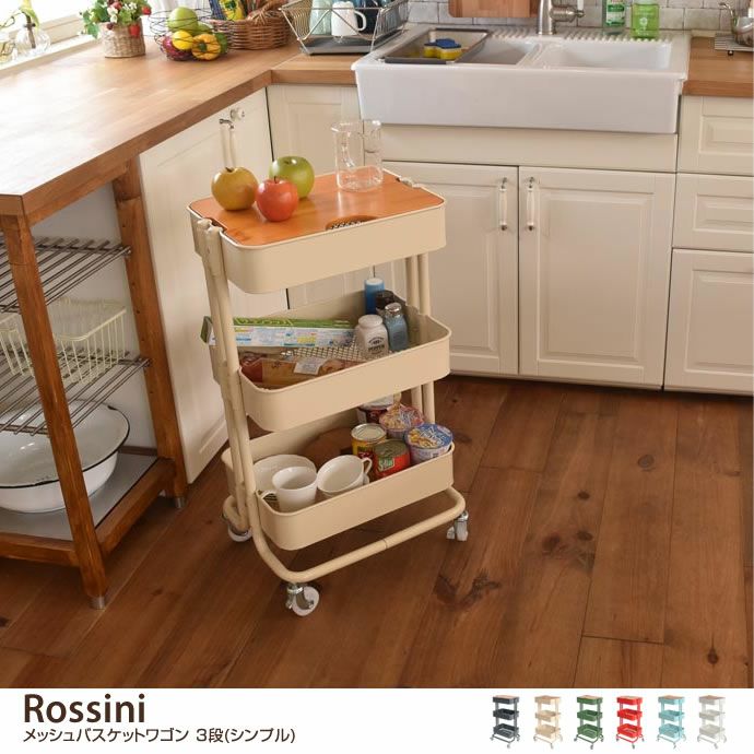 【幅45cm】 Rossini メッシュバスケットワゴン 3段(シンプル)
