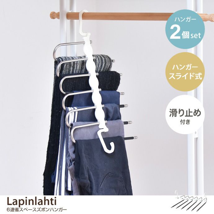 【2個セット】Lapinlahti 6連省スペースズボンハンガー
