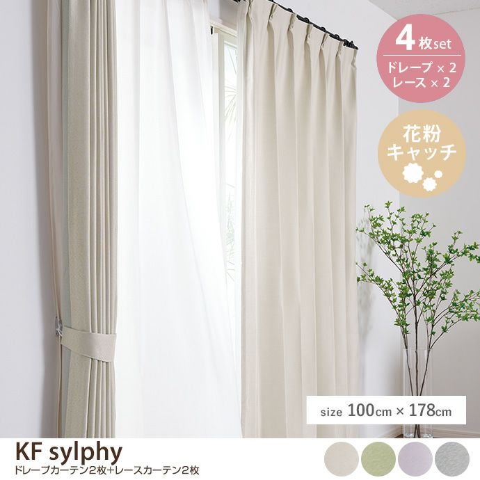 【4枚セット】KF sylphy ドレープカーテン2枚+レースカーテン2枚 100cm×178cm