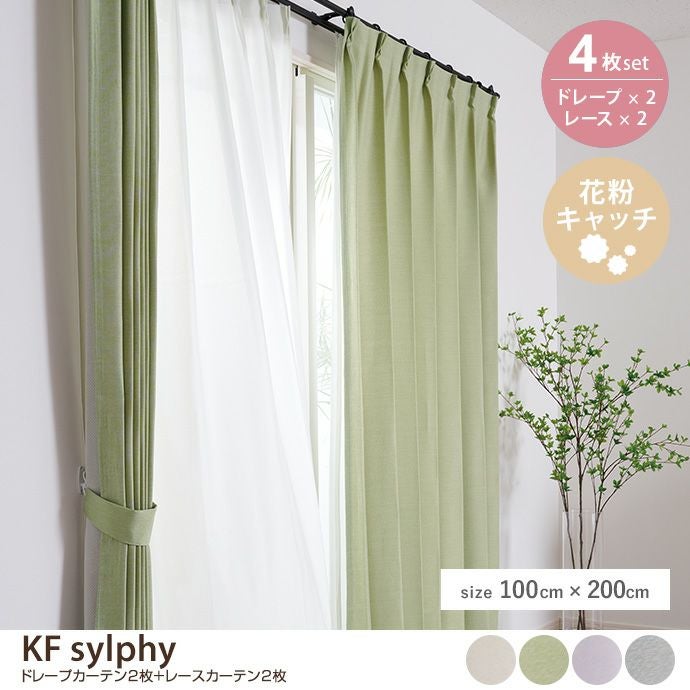 【4枚セット】KF sylphy ドレープカーテン2枚+レースカーテン2枚 100cm×200cm
