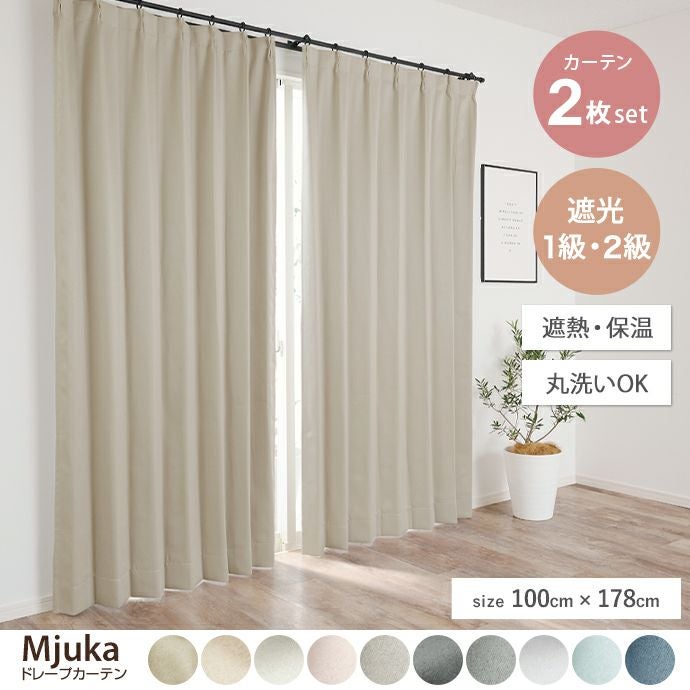【2枚セット】Mjuka ドレープカーテン 100cm×178cm