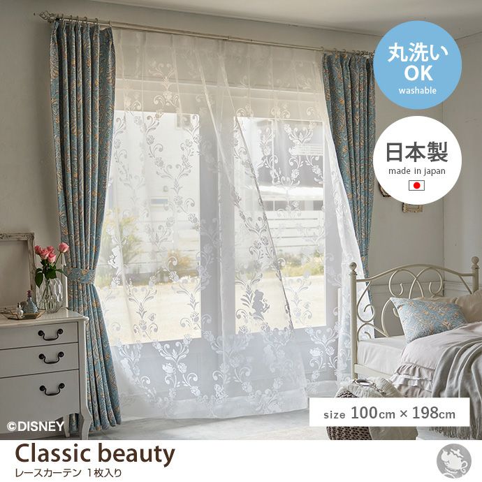 【100cm×198cm】Classic beauty レースカーテン 1枚入り
