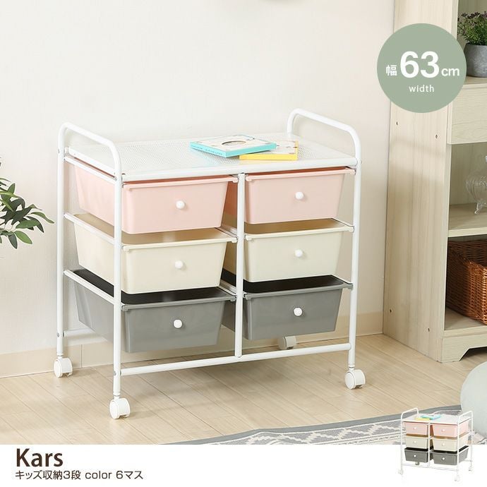 【幅63cm】Kars キッズ収納3段 color 6マス