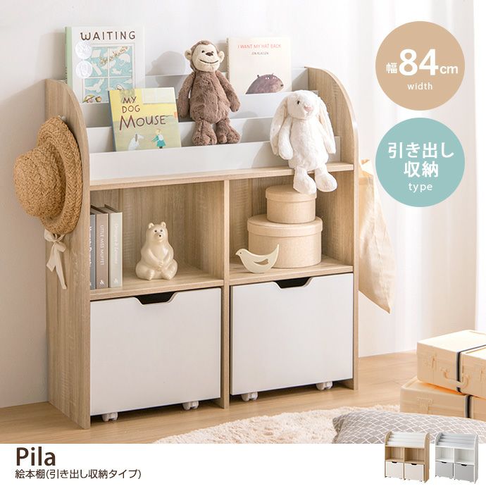 【送料無料】【幅84cm】Pila 絵本棚(引き出し収納タイプ)