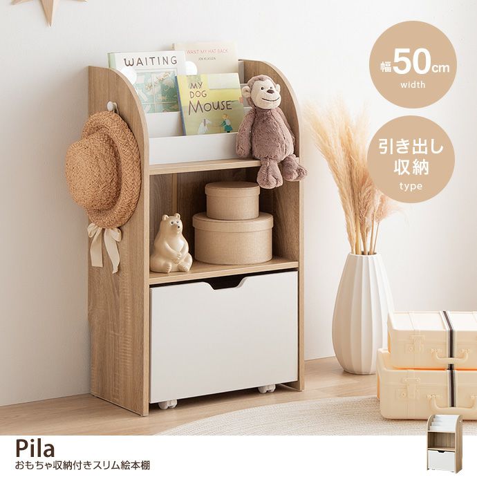 【送料無料】【幅50cm】Pila おもちゃ収納付きスリム絵本棚