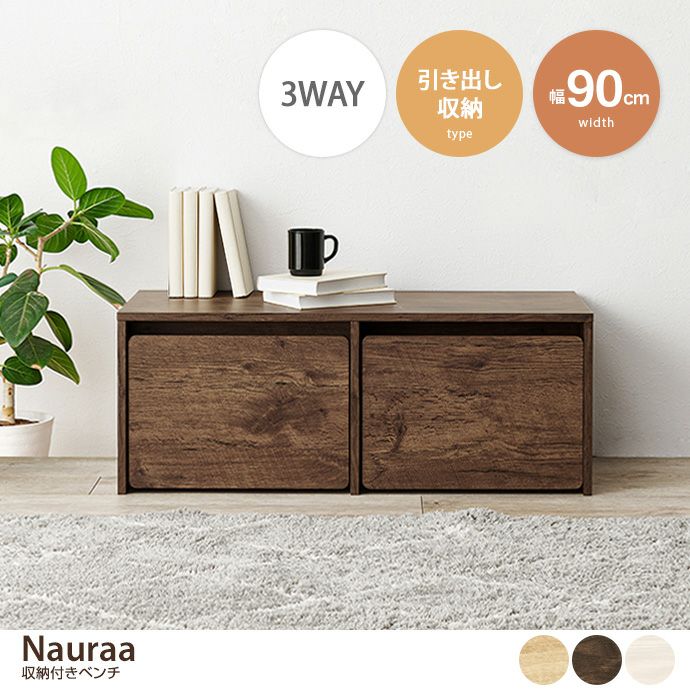【送料無料】【幅90cm】Nauraa 収納付きベンチ