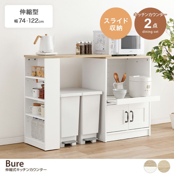 【送料無料】【幅74~122cm】Bure 伸縮式キッチンカウンター